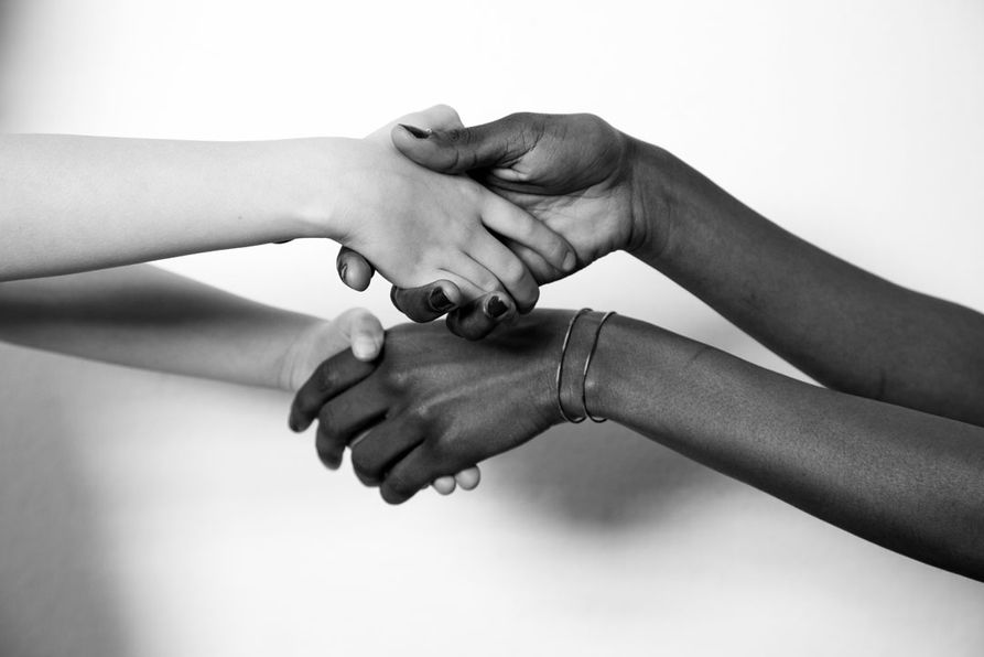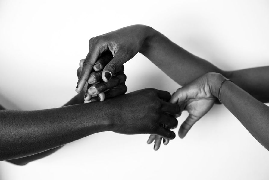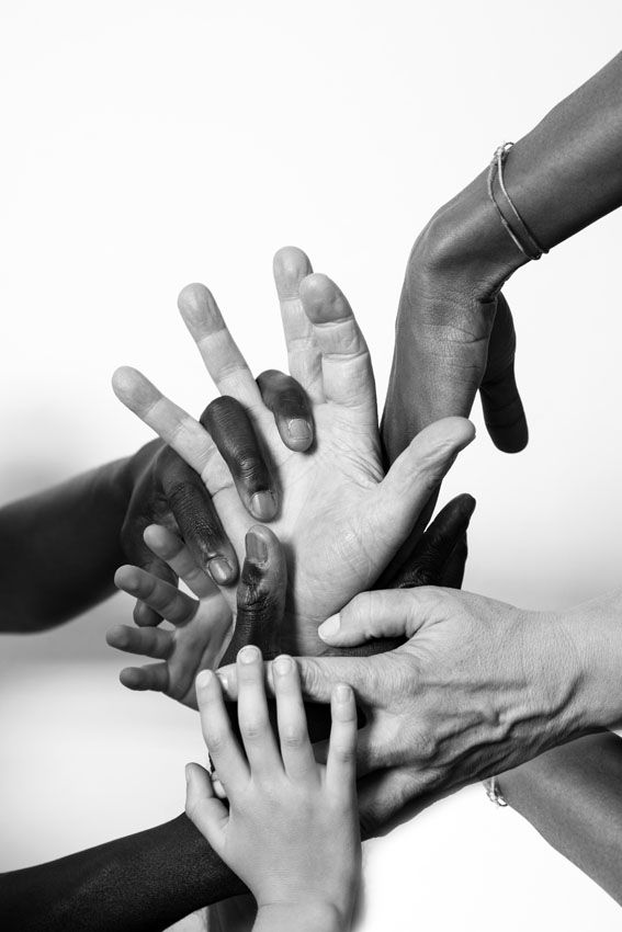 Mani di adulti e bambini, mani che giocano e si abbracciano.